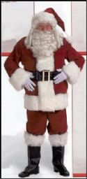 Made from exquisite red velvet and accented with luxurious white long-hair plush trim. Suit includes: